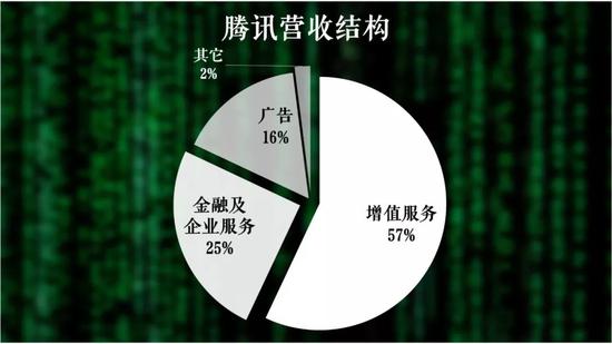 在2018年下半年进行组织架构调整后,腾讯重新梳理了旗下不同的业务模块,将其分为三类:游戏、视频、音乐等互联网增值服务;广告(分为腾讯新闻与腾讯视频等“媒体广告”和微信上的“社交及其他广告”);金融与企业服务等。