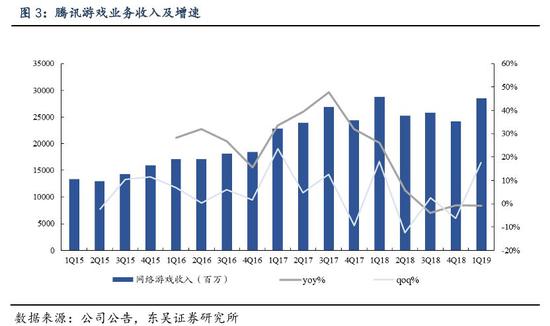 自2018年3月游戏版号暂停发放以来,腾讯的游戏业务营收经历了两个季度的下滑,12月游戏版号重启审核后,随着新游戏的不断推出,游戏业务终于能重新复工,推动腾讯业绩提升。